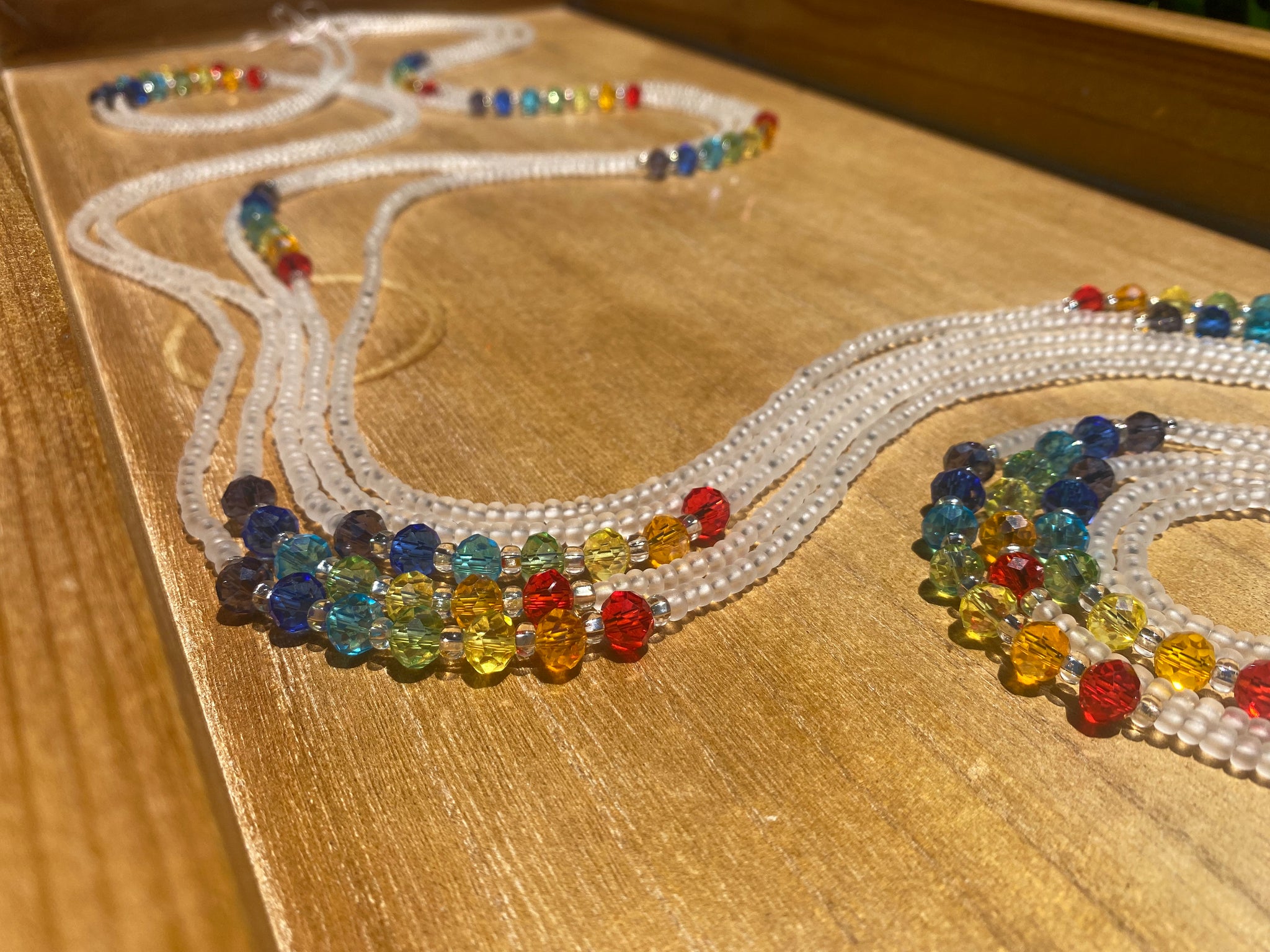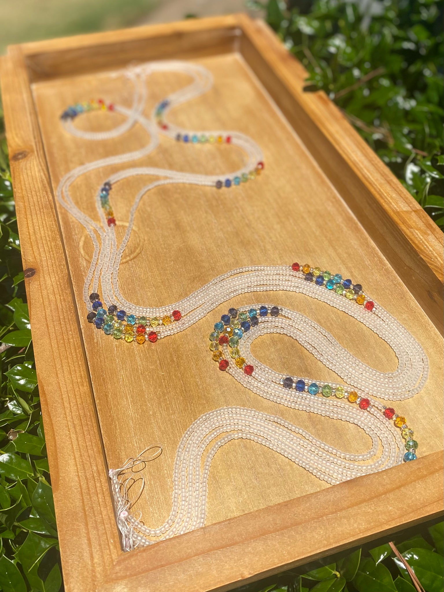 This is a grounding strand. Great for harnessing the energy of all 7 chakras. It features chakra faceted crystal beads.
