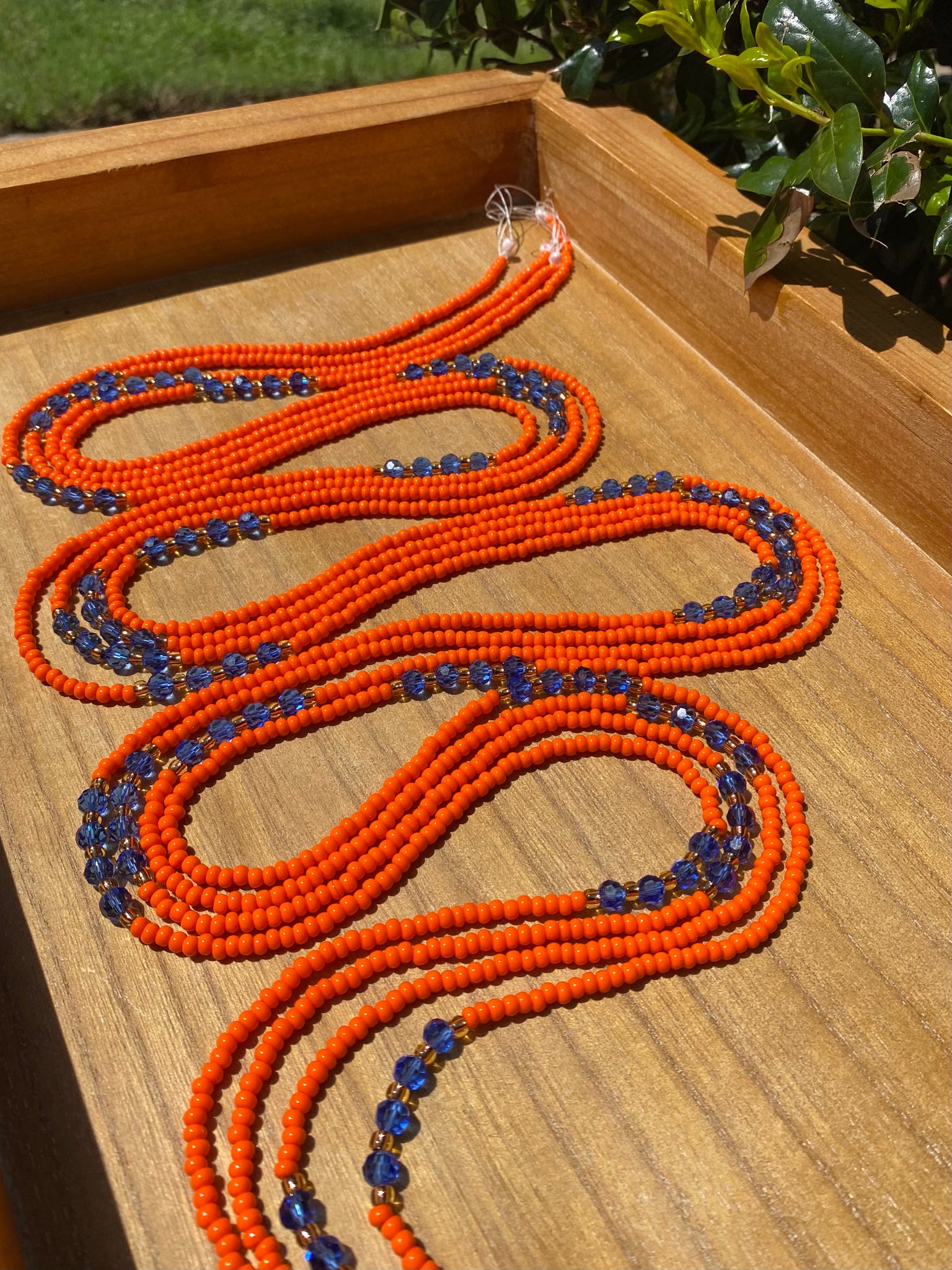 I Set Out To Create A Strand With The Intentions Of Optimism & Trust, Which Was Representative Of My Current Life’s Journey. When Thinking Of Colors For This Strand, I Settled On Orange, Which Signifies Optimism & Determination, & Blue, Which Signifies Security, Trust & Responsibility. This One Is Personal For Me. I Invite You To Adorn Yourself With..